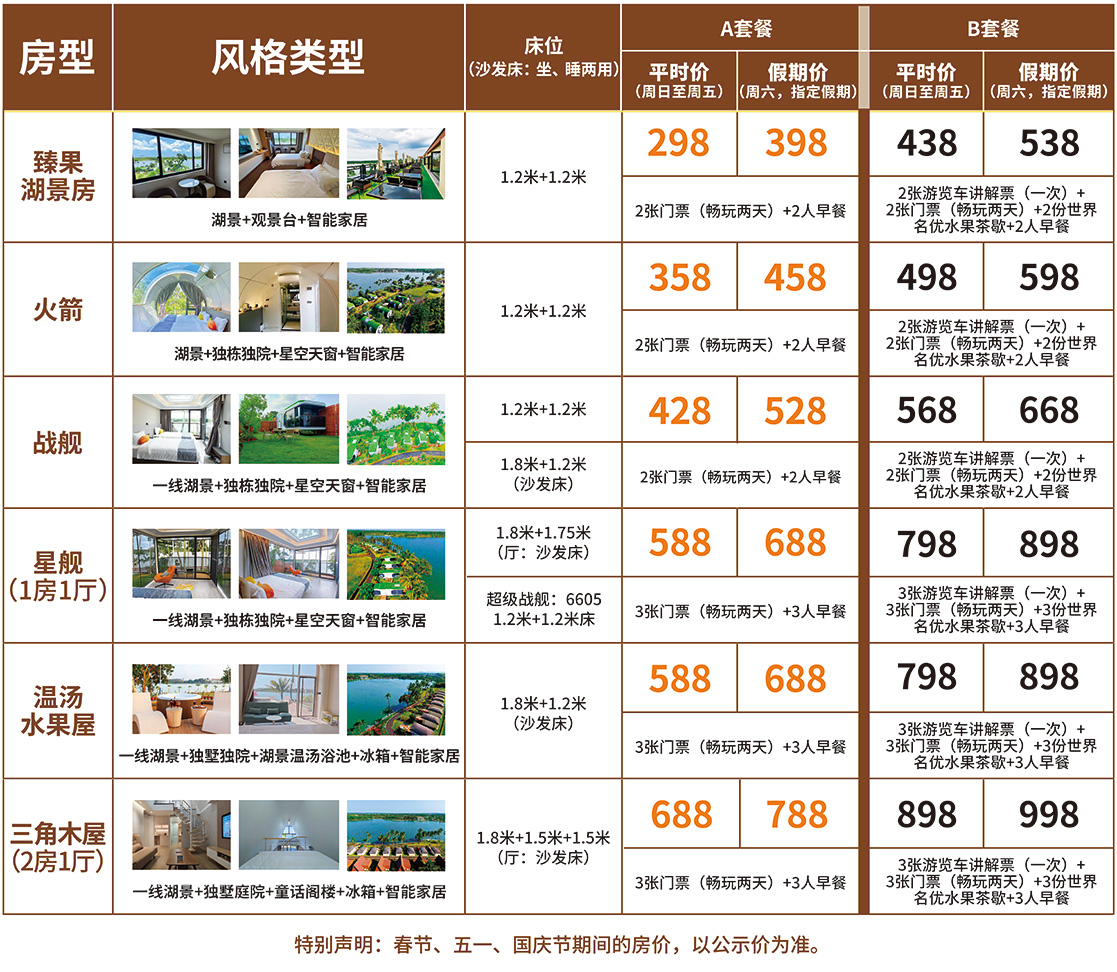 风格类型:一线湖景+独栋独院+星空天窗+智能家居 床位:1.2米+1.2米;1.8米+1.2米(沙发床) 餐饮:含早餐2份(价值108元/份)